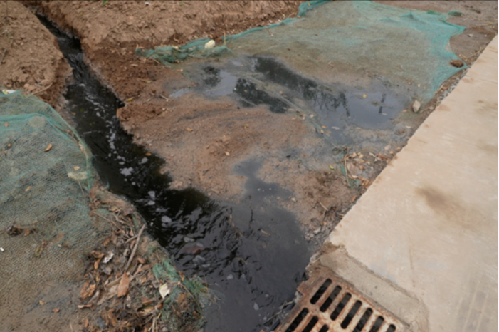 然后,環保督察就看到了如此奇葩景象:該園區污水無處可去,園區管網內積存約2萬噸污水,四處漫溢。