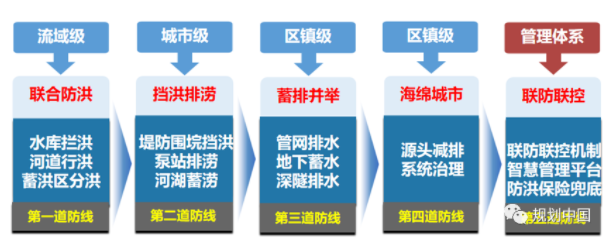 王浩從流域統籌視角出發,以流域為單元,提出城市洪澇綜合治理的“五道防線”,即上游攔蓄、堤防工程、排水管網、建設海綿城市和聯防聯控。