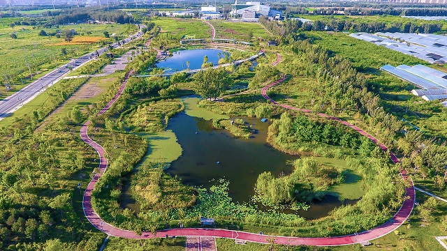 “我們通過利用植物與水系形成山水環(huán)境,把生態(tài)功能濕地、文化景觀元素、田園郊野風(fēng)貌、濕地水系景觀進(jìn)行有機(jī)融合,在大尺度上形成由北向南山林環(huán)繞,水系流動的空間格局。”牛奕娜介紹,“通過水生植物的吸收、濕地填料的吸附、微生物的分解等方式能夠削減面源污染,穩(wěn)定河道水質(zhì)和保護(hù)河道水生態(tài)系統(tǒng)的健康。”