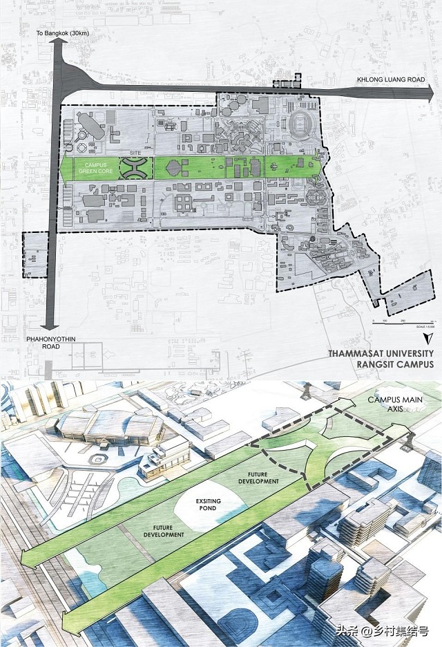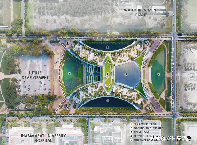 于是,為了振興其所處的土地,泰國國立法政大學(xué)(Thammasat University),在設(shè)計(jì)師的幫助下,重新利用了建筑上被忽視的236806平方英尺的(約22000平方米)屋頂空間,包括有7000平方米的農(nóng)業(yè)區(qū),打造了一個(gè)亞洲最大的屋頂有機(jī)農(nóng)場。農(nóng)場融合了可持續(xù)糧食生產(chǎn)、能源再生、有機(jī)廢物、水資源管理,創(chuàng)造了校園綜合循環(huán)經(jīng)濟(jì),同時(shí)農(nóng)場還可滿足城市休閑,是一處公共活動空間。接下來,小編就說一說這座屋頂農(nóng)場的具體設(shè)計(jì)。