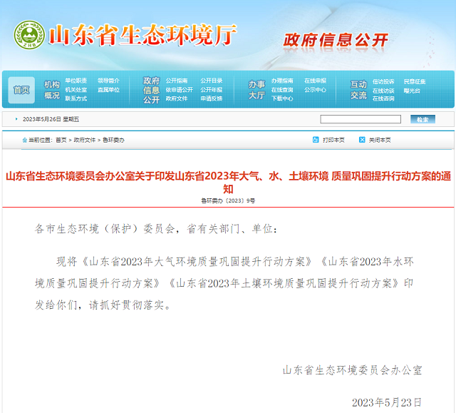 5月23日,山東省生態環境廳發布《山東省2023年水環境質量鞏固提升行動方案》。對山東省既有城市污水處理廠提標至地表水準IV類,提標改造率不低于40%。指導現有污水處理廠進水生化需氧量濃度低于100 毫克/升的城市和縣城,制定系統化整治方案,采取管網普查改造、溯源執法等措施,不斷提升山東省城市生活污水處理廠進水生化需氧量濃度。