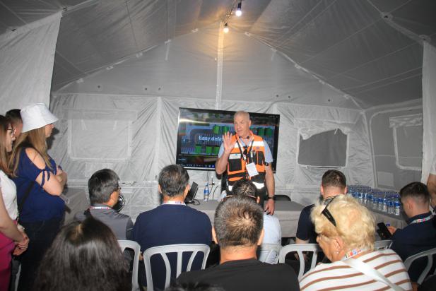 6月28日會議組織會議代表前往以色列最大的污水處理廠(Shafdan),首先在污水廠空地處系統講解了應急管理準備事項,并示范了水危機管理的實操應對措施和裝備。