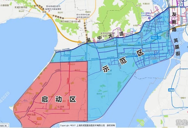 臨湖片區(qū)高品質(zhì)供水啟動(dòng)區(qū)位于吳中區(qū)西側(cè),毗鄰太湖,北至東太湖路,南至大缺港,東至東山大道,西至環(huán)太湖路,總面積約54平方公里,共包含44個(gè)小區(qū),12個(gè)行政村,目前服務(wù)人口數(shù)量約為10萬(wàn)人。該片區(qū)飲用水主要由吳中新水廠供給,供水規(guī)模約2.5萬(wàn)m3/天。