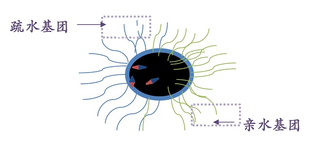 雙親性磁性janus粒子結(jié)構(gòu)示意圖,表明它具有兩種親水疏水基團結(jié)構(gòu)。