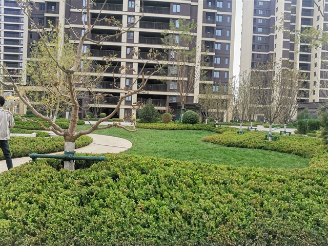 綠城集團(tuán)天津桂語(yǔ)聽(tīng)瀾項(xiàng)目位于空港經(jīng)濟(jì)區(qū)環(huán)河?xùn)|路與東八道交口處,項(xiàng)目類型為住宅小區(qū),可用地面積61808.8平方米,通過(guò)設(shè)置下凹綠地、透水鋪裝等海綿設(shè)施,同樣實(shí)現(xiàn)了年徑流總量控制率≥75%的目標(biāo)。該項(xiàng)目道路均為平緣石,硬質(zhì)鋪裝豎向高于周邊綠地,雨水自然找坡匯流到下凹綠地內(nèi)。在滿足排水要求的同時(shí),該項(xiàng)目也強(qiáng)調(diào)與景觀緊密結(jié)合,喬木種植區(qū)局部下凹,景觀休憩區(qū)整體下凹,微地形起伏環(huán)繞,在有限的用地空間內(nèi)平衡功能與景觀需求,實(shí)現(xiàn)土地的高效利用,既能保護(hù)景觀植物,又能創(chuàng)造更多的層次和調(diào)蓄空間,豐富景觀效果,實(shí)現(xiàn)人與自然和諧共處。