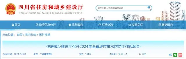 4月2日,住房城鄉建設廳召開2024年全省城市排水防澇工作暨排水防澇能力提升工程建設工作視頻會。廳黨組成員、副廳長葉長春主持會議并講話,省發展改革委、省氣象局有關負責同志參會。