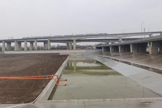 圖為北京大寧調蓄水庫水毀修復工程新建的消力池。新華社記者劉詩平攝