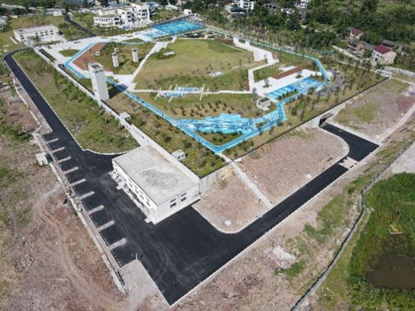 重慶設(shè)計(jì)集團(tuán)有限公司市政設(shè)計(jì)研究院設(shè)計(jì)師介紹,項(xiàng)目為半地埋式污水廠,采用污水處理車間雙層加蓋半地埋的建設(shè)方案,車間負(fù)一層設(shè)置為各個(gè)污水處理構(gòu)筑物,車間一層為廠區(qū)運(yùn)行人員操作層,車間頂層設(shè)有景觀公園,在合理布置景觀的同時(shí),還建有籃球場、羽毛球場等體育健身設(shè)施。