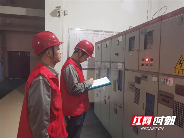 4月19日,國網常德供電公司東方紅(電騾子)共產黨員服務隊在穿紫河余家垱泵站開展安全用電檢查。