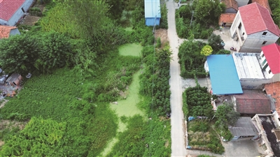 四嶺村8組地勢相對平坦,農舍坐北朝南,呈一字排列,近年來,由于基礎設施建設相對滯后,生活污水都流到村口處約5畝大小的堰塘內,導致雜草叢生、臭味難聞,村民對此處都是避之不及。