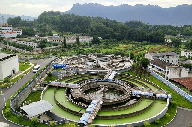 湖北宜昌,在宜昌市夷陵區(qū)太平溪鎮(zhèn)許家沖村,污水處理廠正在對(duì)太平溪集鎮(zhèn)及周邊收集來的污水進(jìn)行凈化處理。