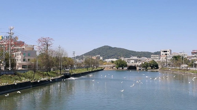 連通練江的護城河邊白鷺成群