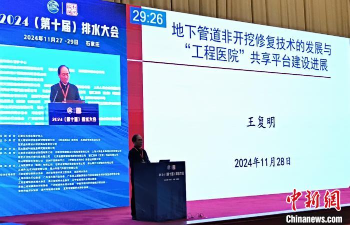 中國工程院院士、中山大學(xué)教授王復(fù)明做了題為《地下管道非開挖修復(fù)技術(shù)的發(fā)展與“工程醫(yī)院”共享平臺建設(shè)進展》的報告。他系統(tǒng)分析了當前城市地下管網(wǎng)、隧道等基礎(chǔ)設(shè)施面臨的水災(zāi)害及病害難題,深入講述了團隊在地下工程滲漏防治、地下管道非開挖修復(fù)等方面取得的成果。他介紹說,當前“工程醫(yī)院”已覆蓋水利、土木、交通等絕大多數(shù)工程建設(shè)領(lǐng)域的基礎(chǔ)設(shè)施,為城市排水工程遇到的問題提供了解決方案。