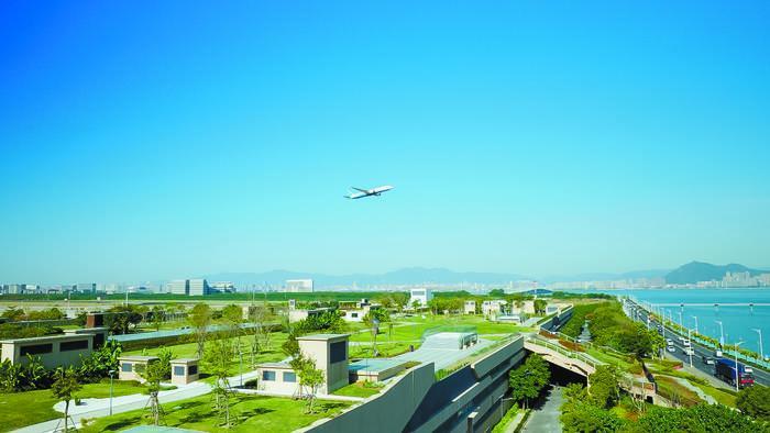 高崎水質凈化廠位于廈門本島高崎機場以南,通過半地下集約式的建設形式,上層建設屋頂花園、中間層設為運營維護空間、地下層布置污水污泥處理構筑物和管道,將城市景觀、運營維護、污水處理三大功能上下疊合,從空間上高效利用土地資源,實現20萬噸/日的處理規模。同時,為廈門本島高崎機場T4航站樓的開發預留景觀延伸帶,將稀缺景觀資源帶給市民,構建了“人水和諧”的全新生態空間。