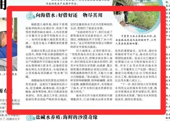 被蔚藍大海環抱、擁有千里綿延海岸線的山東煙臺市,卻是個典型的資源性缺水城市,人均水資源占有量僅為全國平均值的五分之一。如何向浩瀚大海汲取發展之源,一直是當地人不懈探索的重要課題。