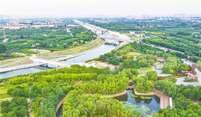 如果我們從高空俯瞰,南水北調(diào)渠如一條美麗“綠帶”系在鄭州腰間。正值初夏,沿渠行走,兩岸綠樹成蔭,林間鳥鳴聲此起彼伏,水中魚兒嬉游。南水北調(diào)渠早已融入這片土地,成為鄭州一道靚麗的風(fēng)景線。