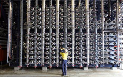 在操作的核心部分:威立雅技術人員檢查安裝在撬裝壓力容器中的反滲透膜。