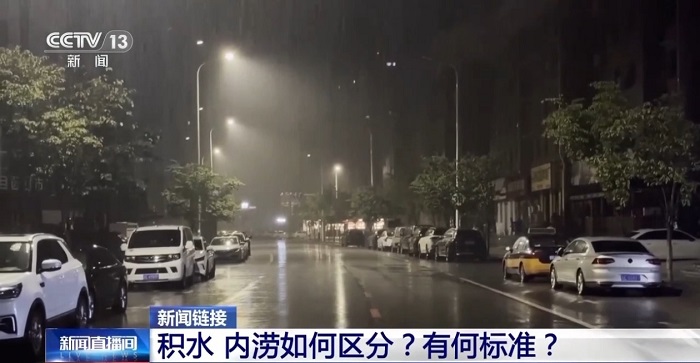 中國城市規(guī)劃設計研究院副總工程師王家卓:積水、內(nèi)澇,實際上是不同的概念,積水一般指的是本地的降雨超出了管網(wǎng)的排放能力,地表上有一些水的積存,那就可以稱為積水,這個積水可以淺、可以深。