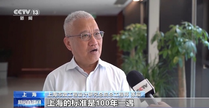 上海市政工程設計研究總院總工程師張辰:應對內(nèi)澇,要做到積水少、退水快。上海的標準是100年一遇,也就是24小時275毫米的降雨量,當這個雨量降下來以后,積水深度不超過15厘米,退水時間不超過1小時,都不算內(nèi)澇,因為城市還能夠安全運行。