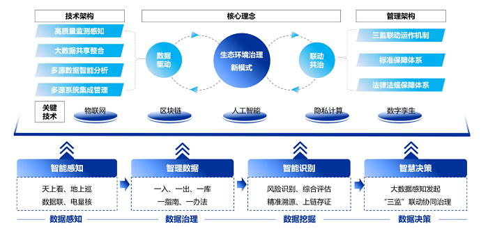 精準治理的實現,離不開全方位的智能監測網絡?!皵祿寗?、三監聯動”的生態環境新型治理體系構建了“天上看、地上巡、數據聯、電量核”新一代智能監測網絡,成為治污“利器”。
