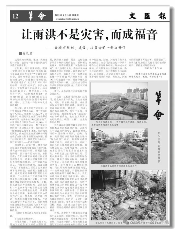 【逝者】俞孔堅:讓雨洪不是災害,而成福音——致城市規劃、建設、決策者的一封公開信