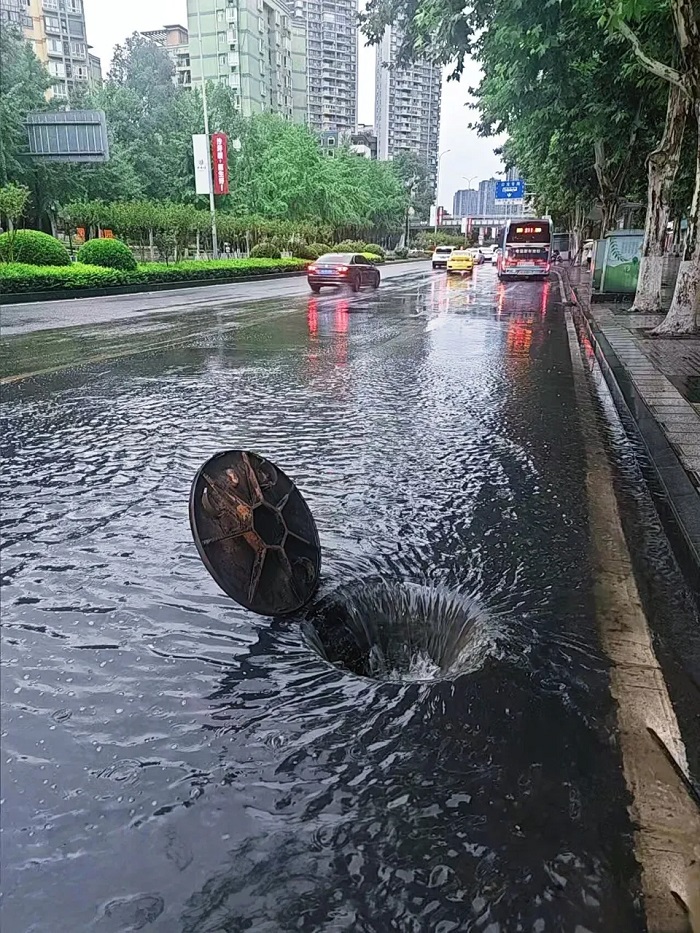 重慶沙坪壩區(qū)住建部門提前將下水道井口打開,以確保泄水通暢。沙坪壩區(qū)氣象局供圖