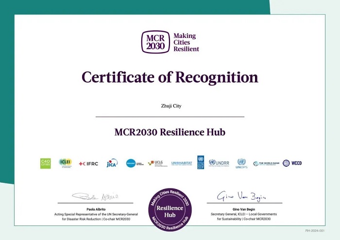 2024年,聯(lián)合國減災(zāi)署公布“世界韌性示范城市”名單,浙江省諸暨市成為繼韓國仁川、菲律賓馬尼拉、韓國蔚山之后,亞太地區(qū)第4個(gè)獲此稱號的城市,也是全國首個(gè)“世界韌性示范城市”。