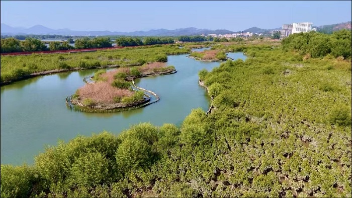 此外,生態優勢正轉化為發展優勢。在好招樓濕地公園,來自深圳的研學團隊正在觀察鷺鳥的棲息情況?!斑@里的生態太好了,孩子們能親眼看到紅樹林生態系統,比書本上生動多了?!睅ш犂蠋煴硎?。目前,“生態修復+濕地旅游+研學教育”的融合發展模式已初見成效,海龜灣旅游區成為國家3A級景區,相關研學產品入選省級特色名單。