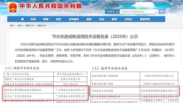 同期,中國水利企業(yè)協(xié)會第二批“節(jié)水服務企業(yè)推薦目錄”發(fā)布,在兩大國家級名錄(目錄)的評選中,由粵海水務任理事長單位的粵港澳大灣區(qū)節(jié)水產(chǎn)業(yè)聯(lián)盟共有12家企業(yè)、13項技術設備入選,彰顯了聯(lián)盟企業(yè)在節(jié)水創(chuàng)新領域的豐富積累與實踐成效。